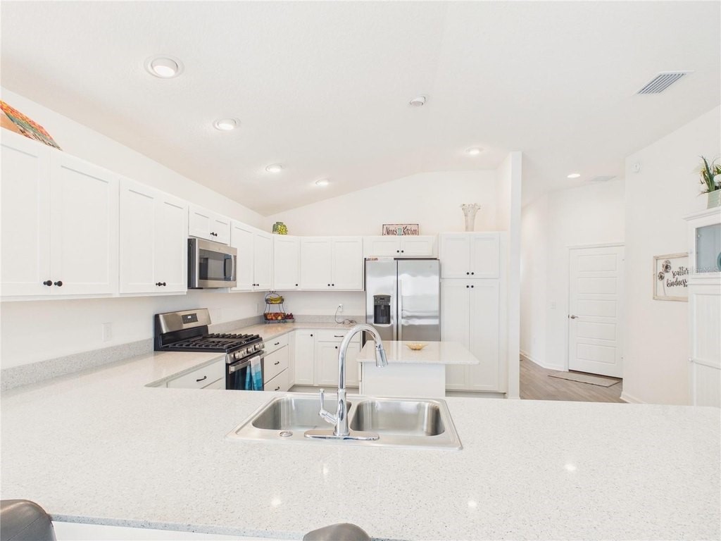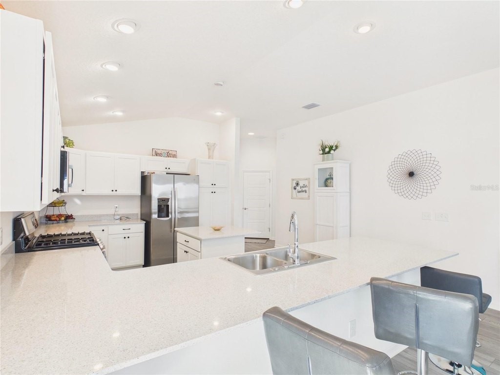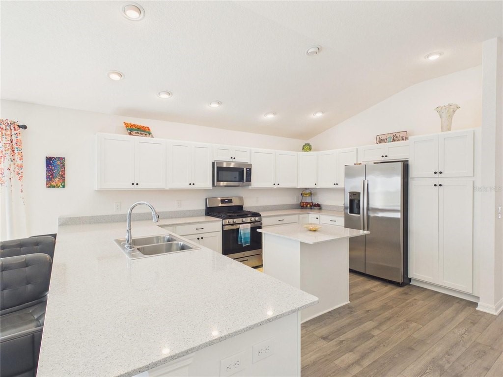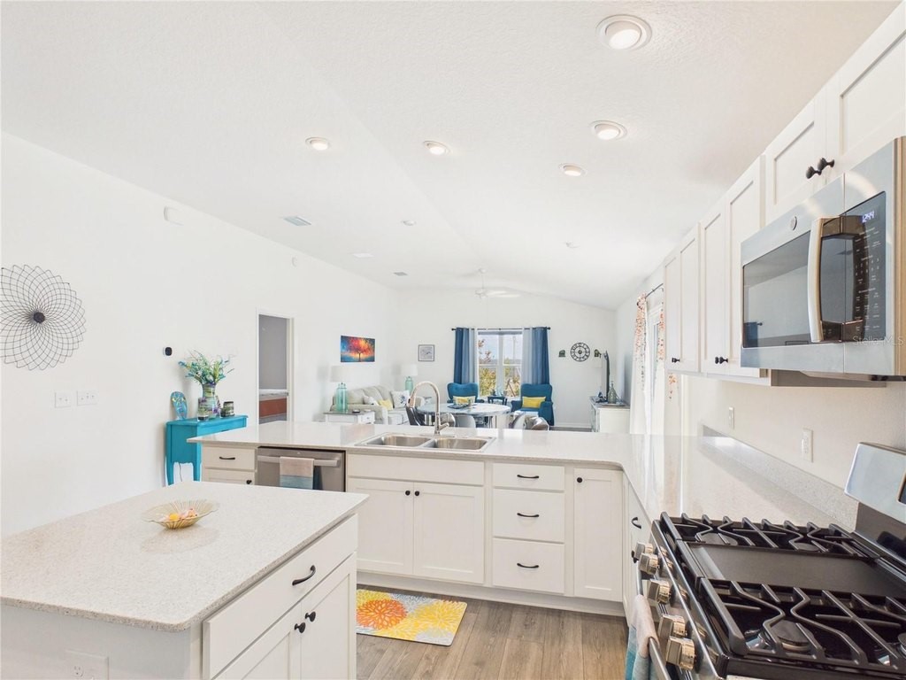 Introducing this COMPLETELY TURNKEY, move in ready Moonstone Villa in the highly sought-after Village of Water's Edge - where location, lifestyle, and luxury come together beautifully. Ideally situated just minutes from Eastport, Middleton, Sawgrass Grove, and the new Tracy Performing Arts Center, this home places you in the heart of everything exciting and new. Whether you're looking for your full-time Florida retreat or a smart investment opportunity, this property checks every box. Inside, you'll find 2 spacious bedrooms, 2 full baths, and a separate golf cart garage (golf cart available separately). The home features quartz countertops throughout, luxury vinyl flooring in the main living areas for easy maintenance, and plush carpeting in the bedrooms for added comfort. Every detail has been thoughtfully designed to create a light, bright, and welcoming atmosphere. Beautifully and tastefully furnished, this villa truly is turnkey - complete with everything you need to begin enjoying The Villages lifestyle immediately. Simply bring your suitcase and start living. It also presents an excellent opportunity as a rental property from day one for those planning ahead for retirement. Imagine your new life here: live music and entertainment 365 days a year in four town squares, more than 3,000 clubs and activities to explore, over 50 golf courses, and 90+ miles of golf cart paths connecting it all. This isn't just a home - it's your gateway to the vibrant, active lifestyle you've been dreaming about. Your next chapter starts here.